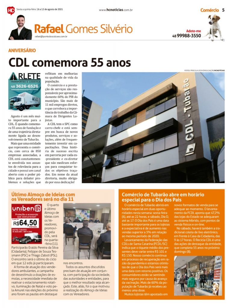 Coluna do presidente da CDL de 6/08/2021