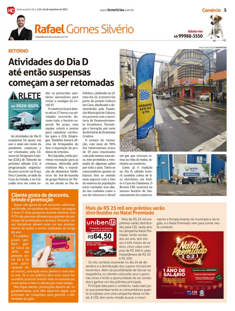 Coluna do presidente da CDL de 3/09/2021